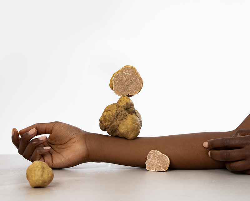 Our founder was profoundly inspired by the story of the white truffle, one of the world's rarest and most valuable ingredients. Beyond its culinary prestige, white truffle is rich in vitamin C, B12, amino acids, and minerals that support elasticity and antioxidant protection.
